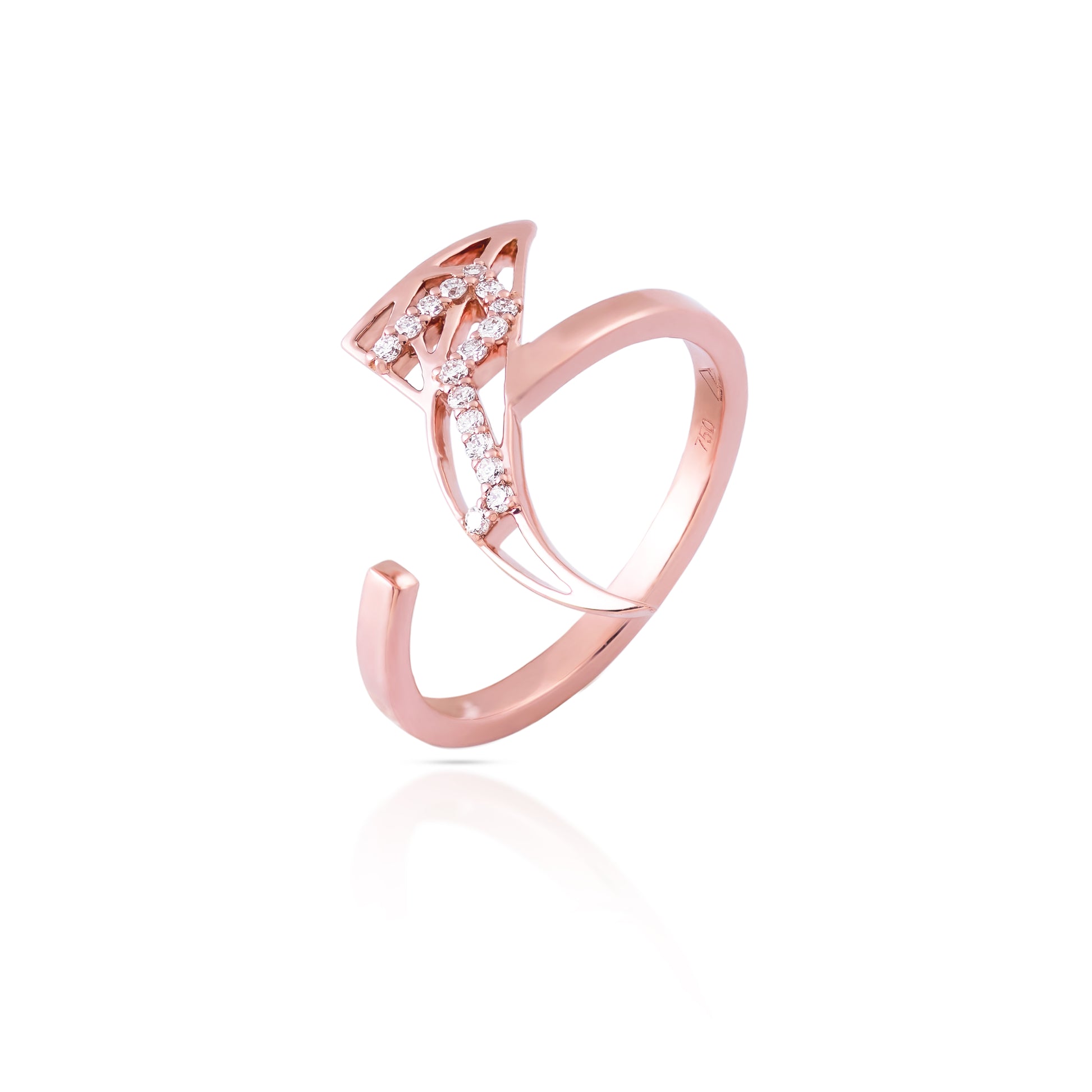 This ring is crafted with 18k yellow, white or rose gold. Its key element is a unique triangle design inspired by Madrid's ABC Museum façade, complemented by exclusive Arabic letter designs.
