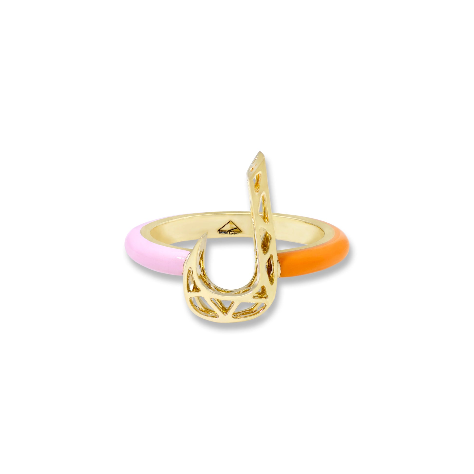 Tessellation – Alphabet Letter Ring With Two Color Of Enamels - Laam