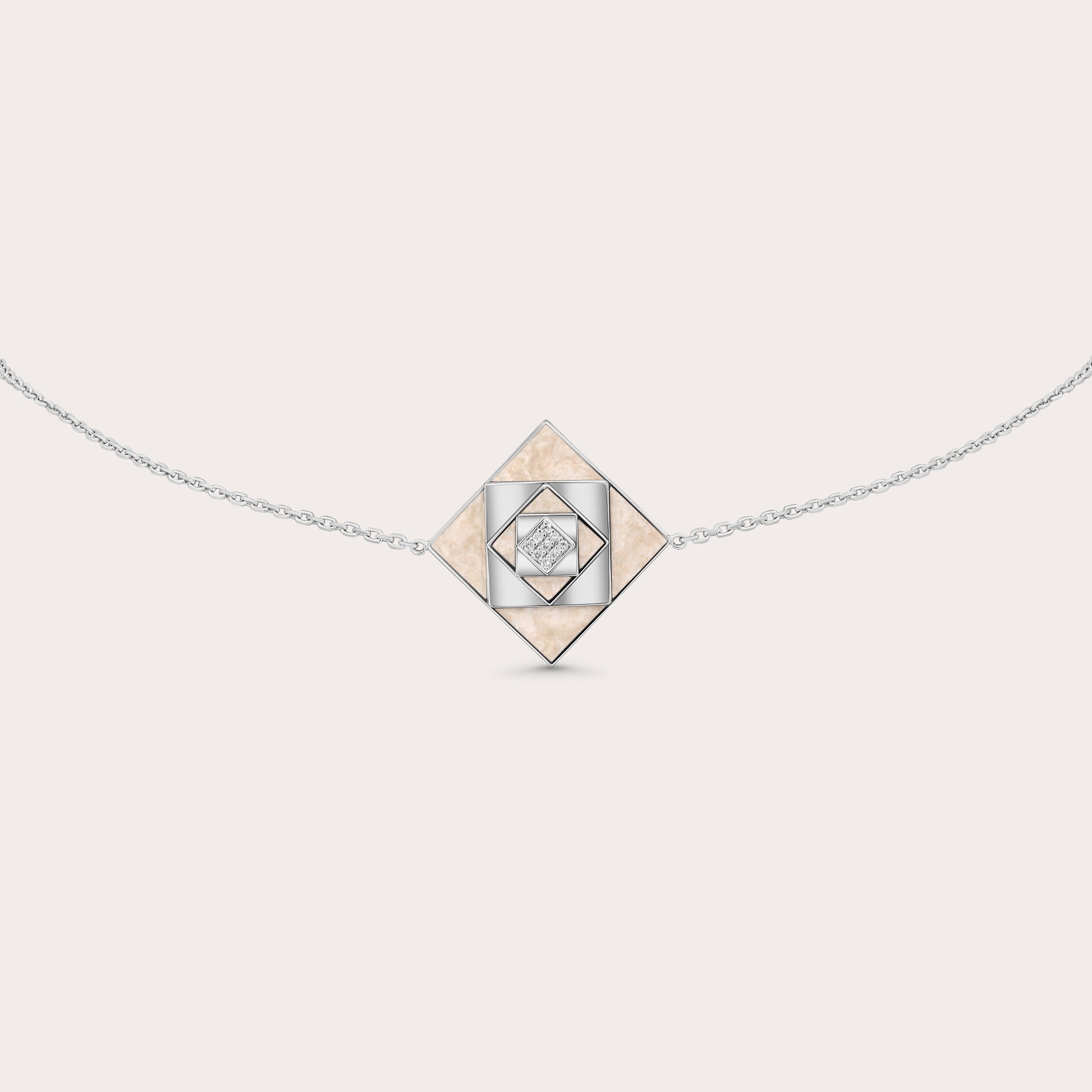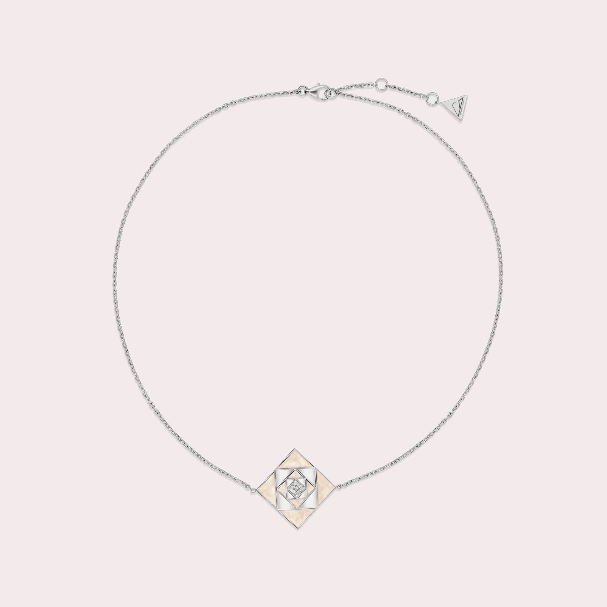 Crafted from white gold, diamonds, and enamel, this choker showcases five layers of gold, elegantly combining diamonds and enamel.