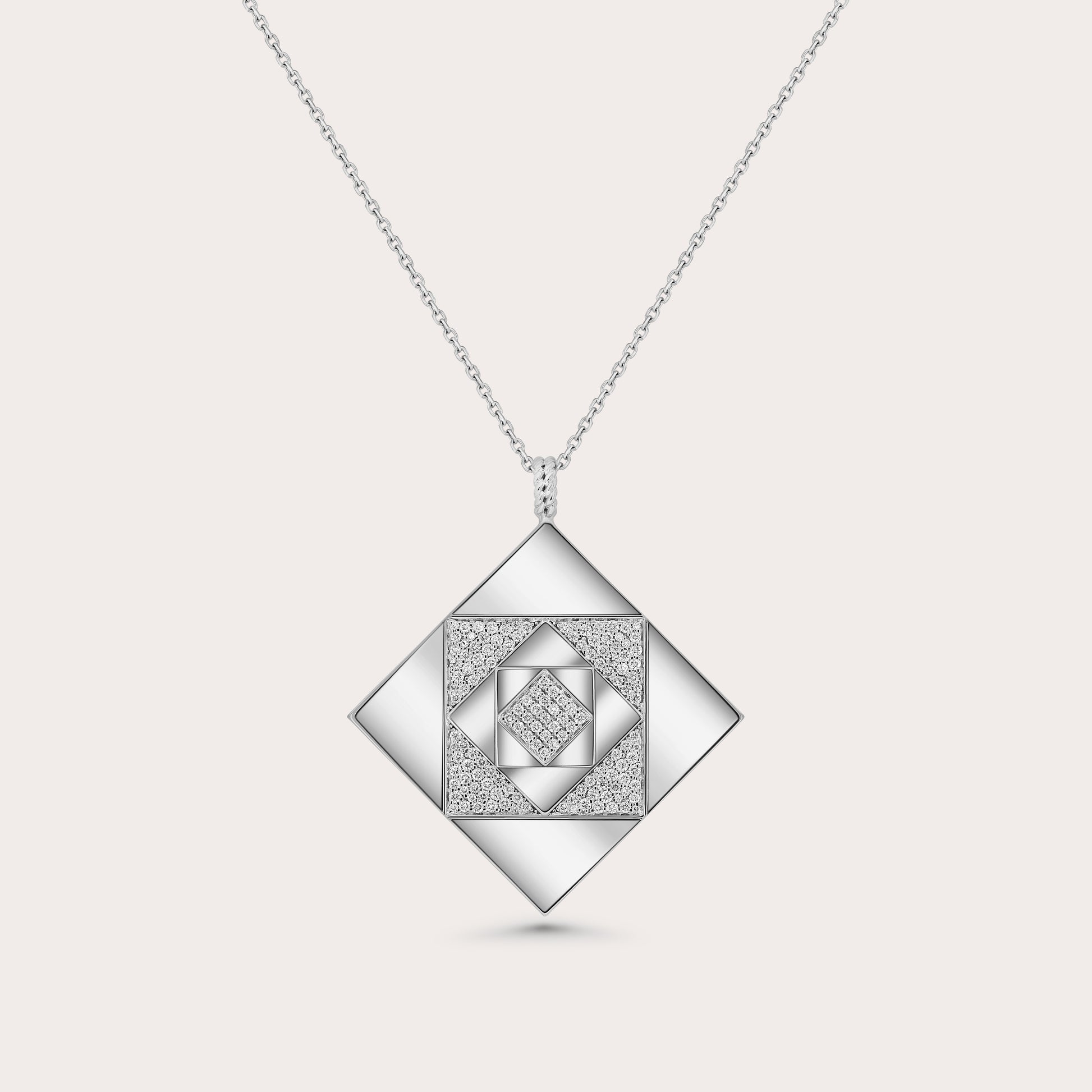 Crafted from white gold and diamonds, this pendant features five layers of gold that combine beautifully with diamonds.