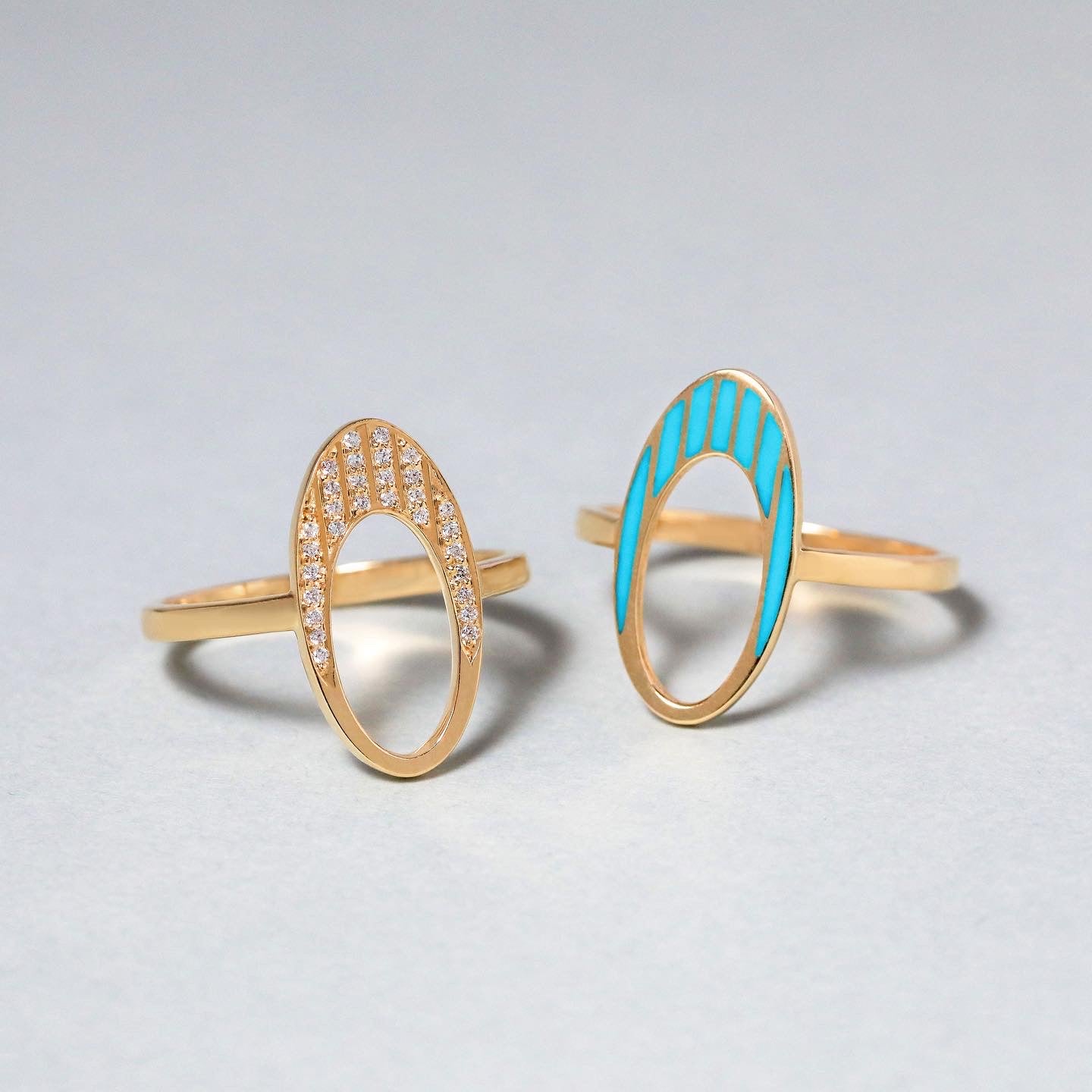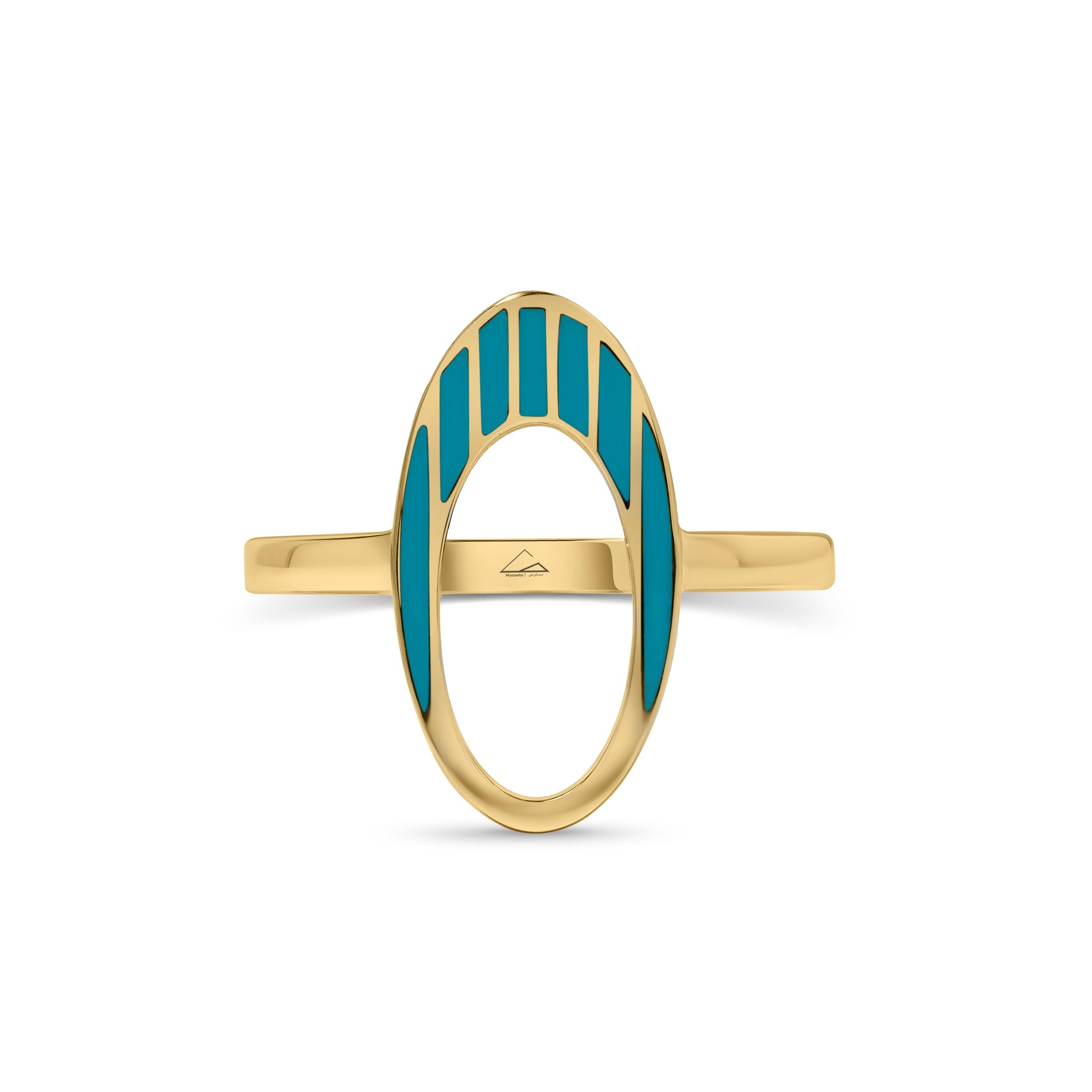 Crafted with 18k yellow gold and adorned with a delicate line of enamel, this exquisite ring draws inspiration from the museums of the future. "The Most Beautiful Building On Earth".