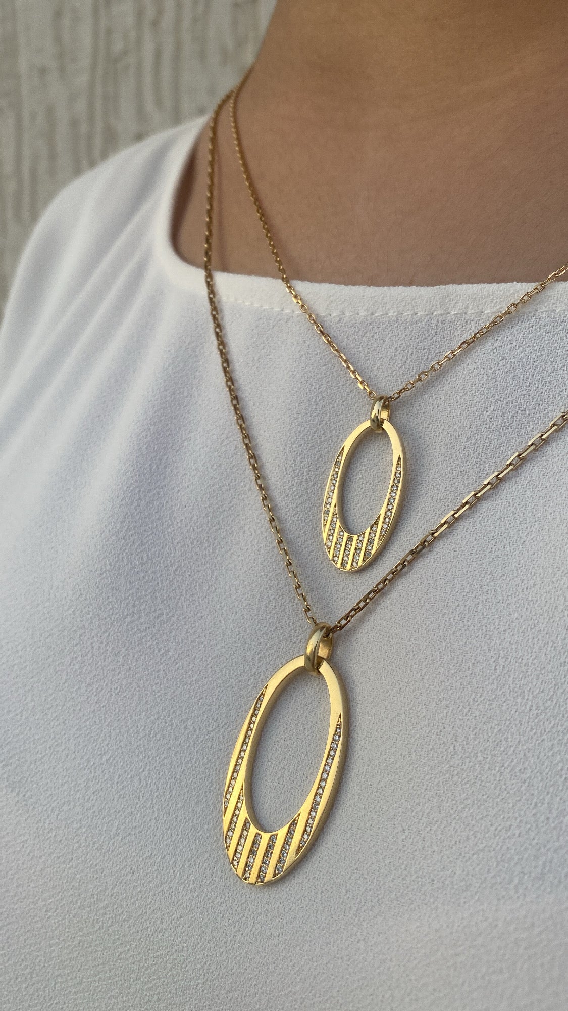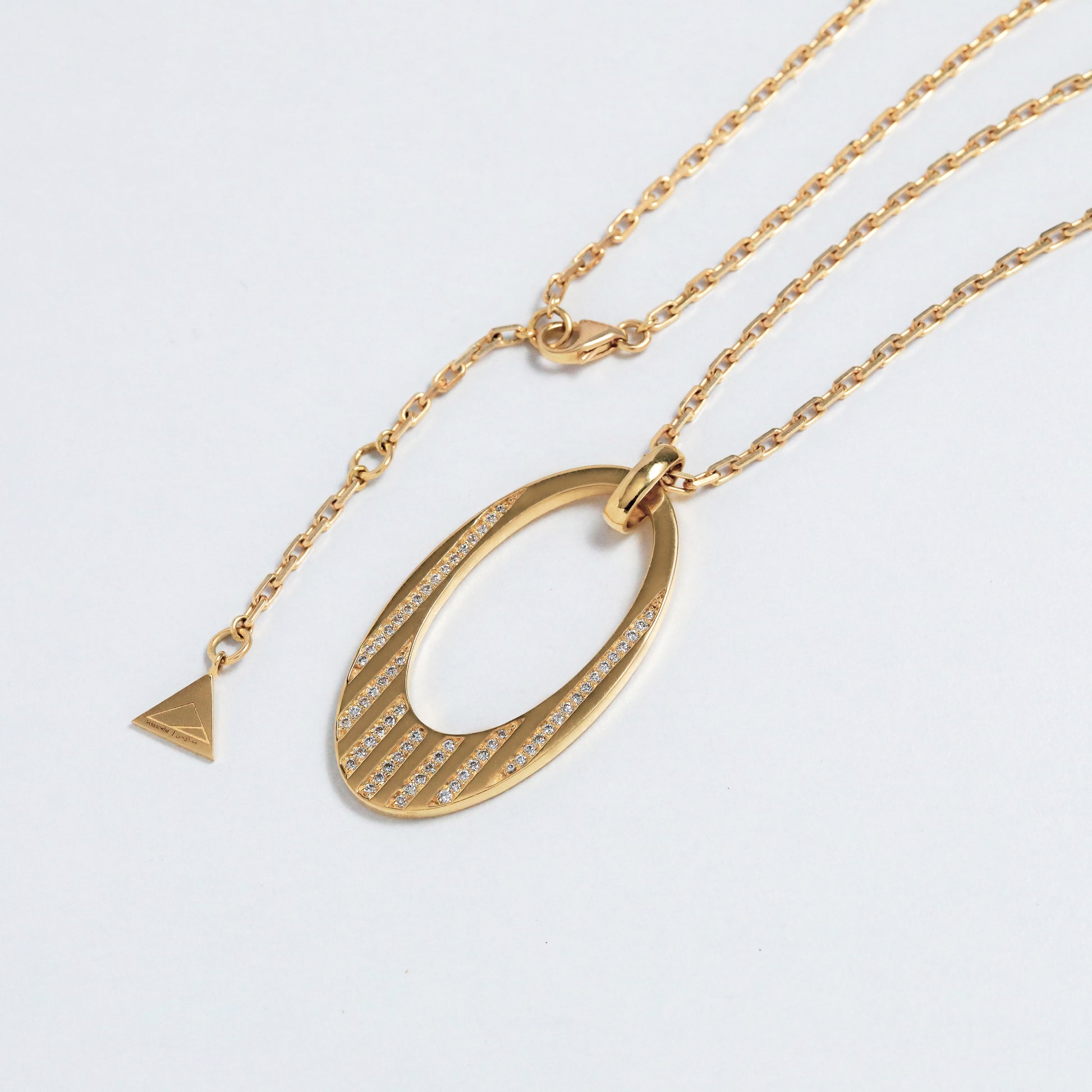 Crafted with 18k yellow gold and adorned with a delicate line of enamel, this exquisite pendant draws inspiration from the museums of the future. "The Most Beautiful Building On Earth".