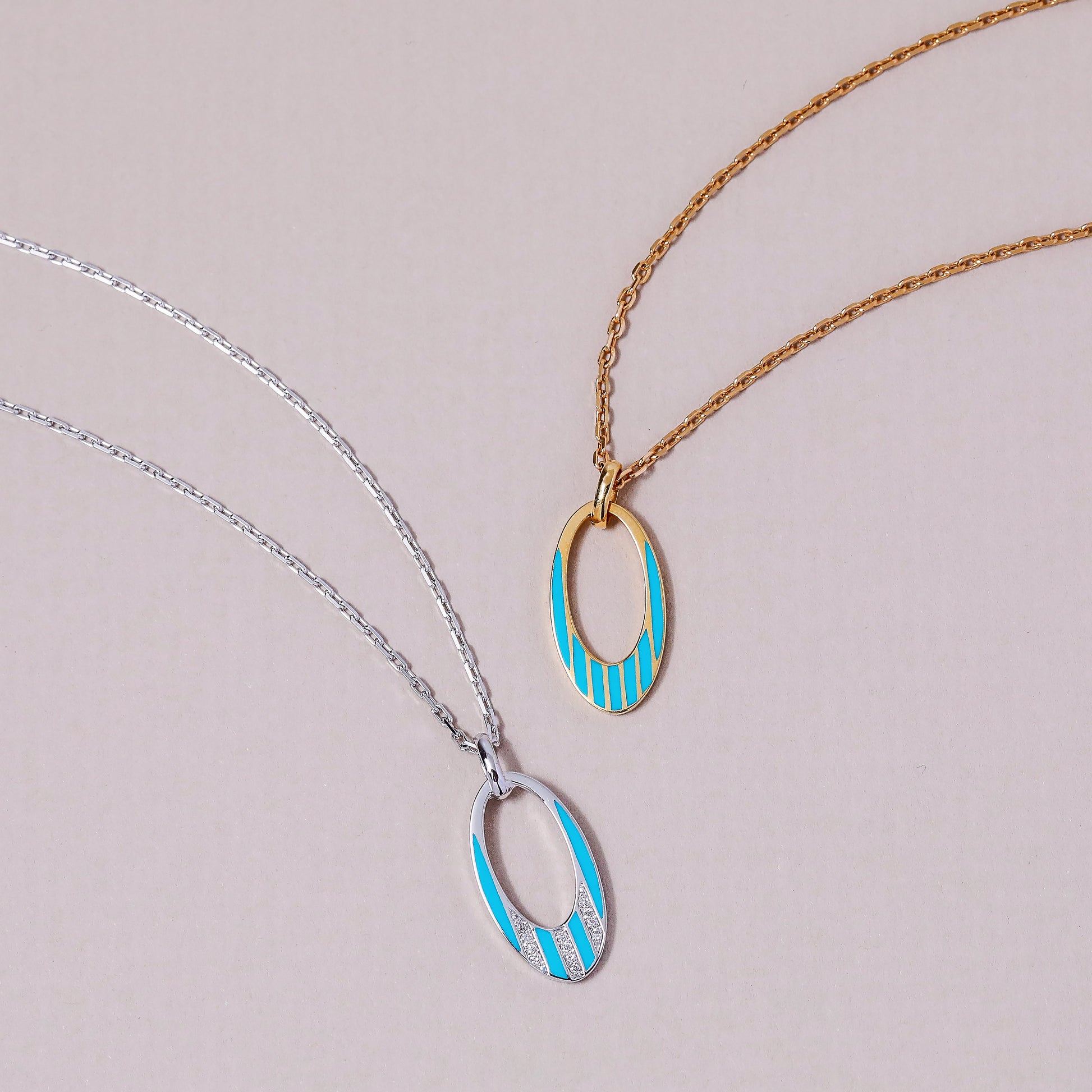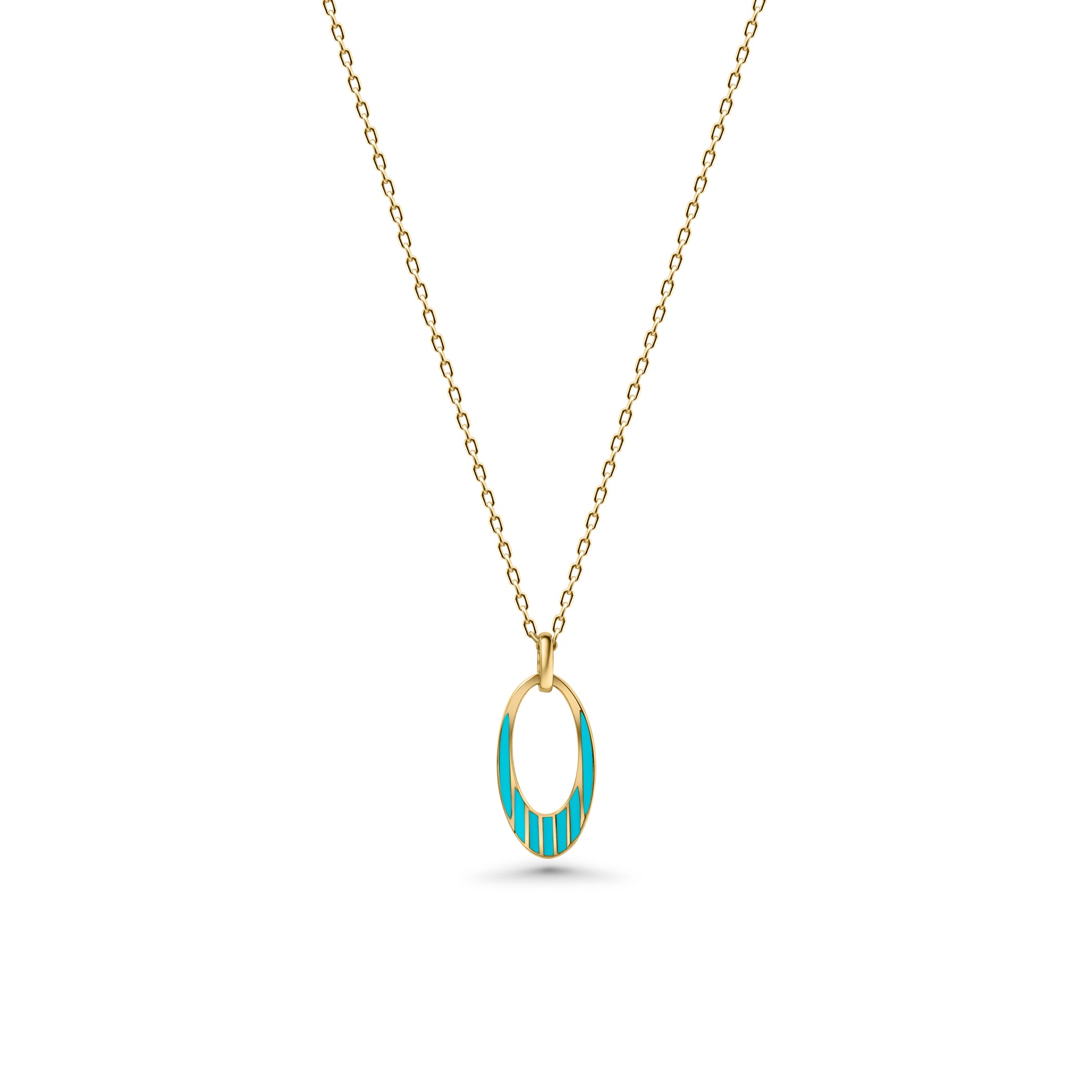 Crafted with 18k yellow gold with lines of enamel, this exquisite pendant draws inspiration from the museums of the future. "The Most Beautiful Building On Earth".