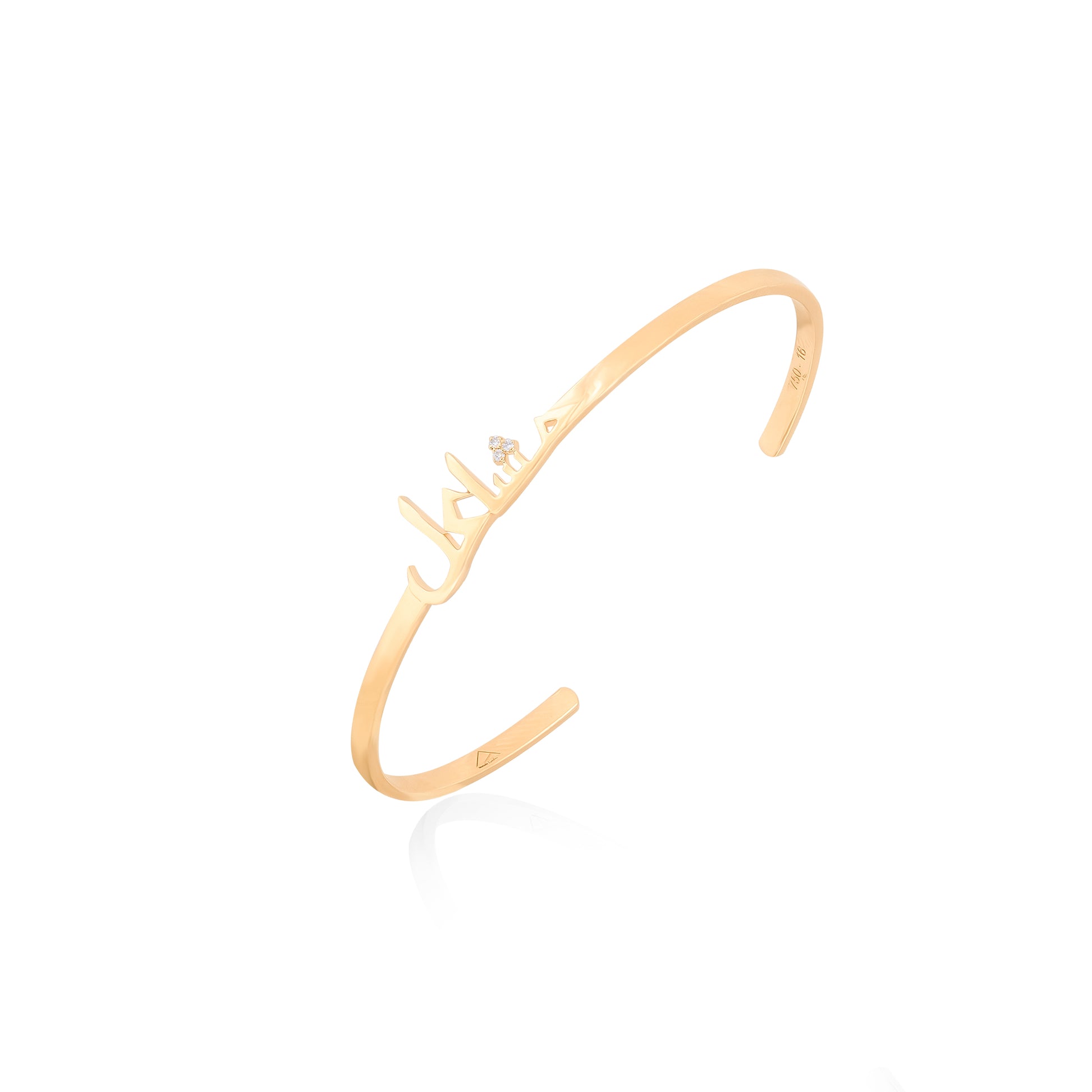 This Bracelet is crafted with 18k rose gold and features one level of gold. Complemented by exclusive Arabic letter or name designs