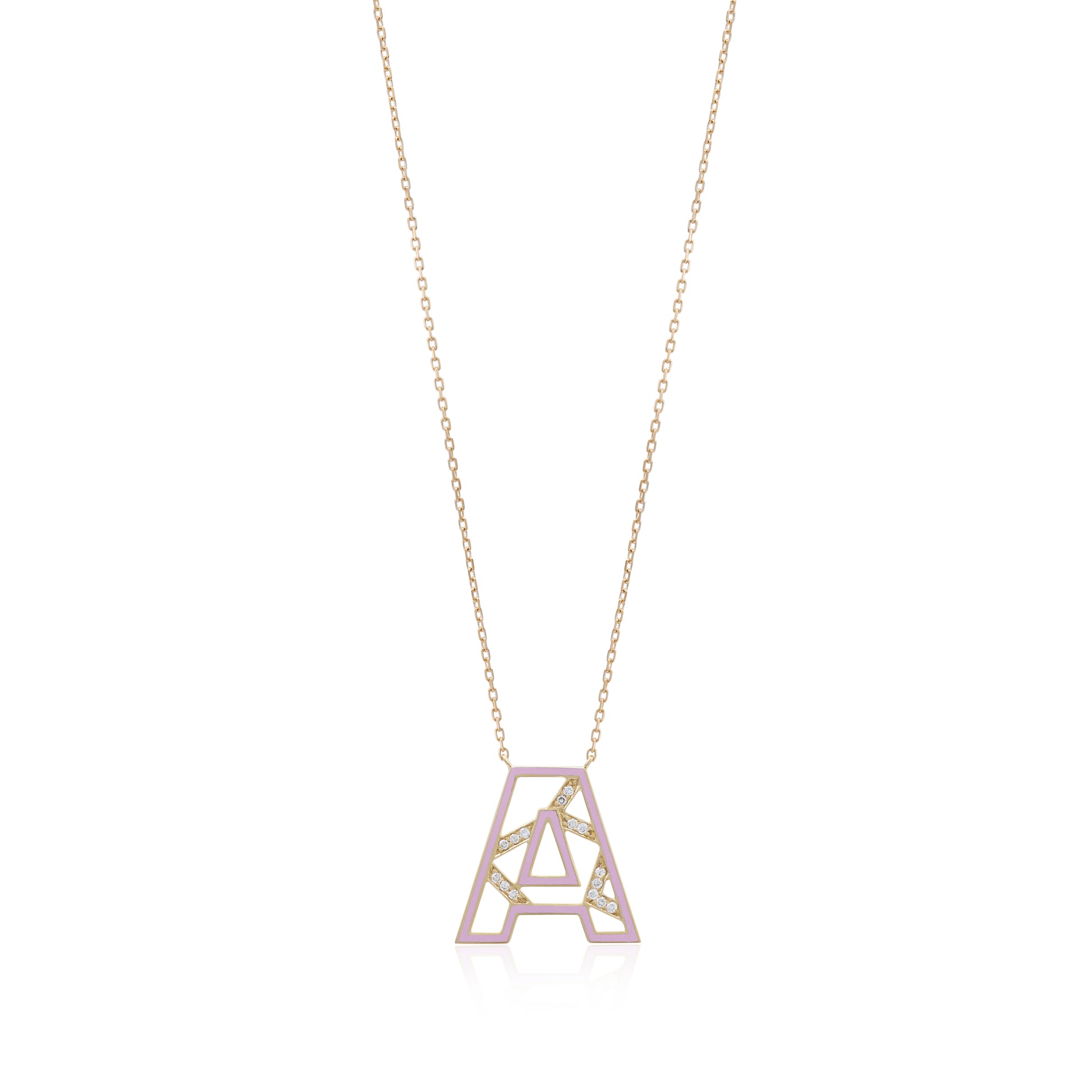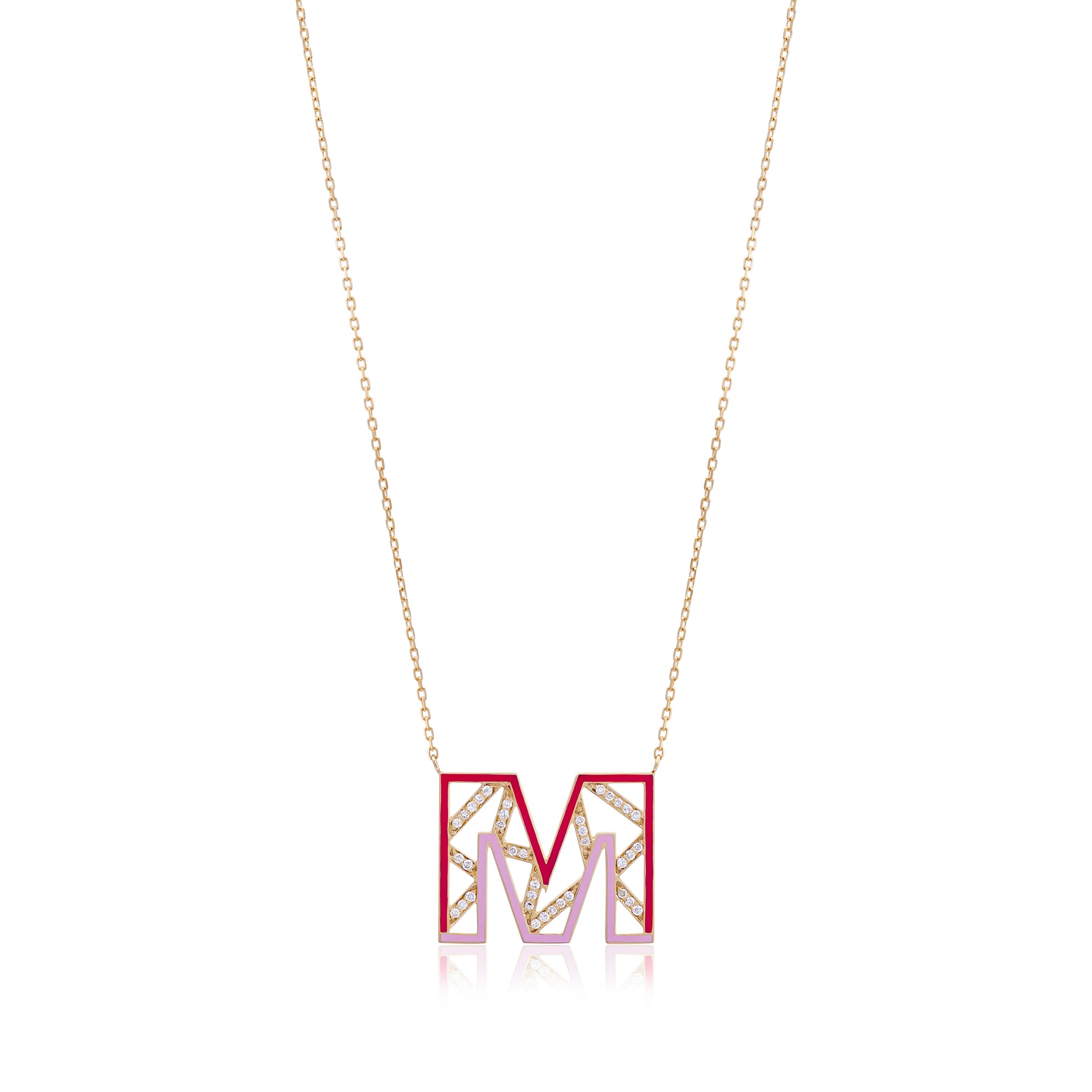 Tessellation – Alphabet Letter M Pendant set in Diamonds and Enamel - English