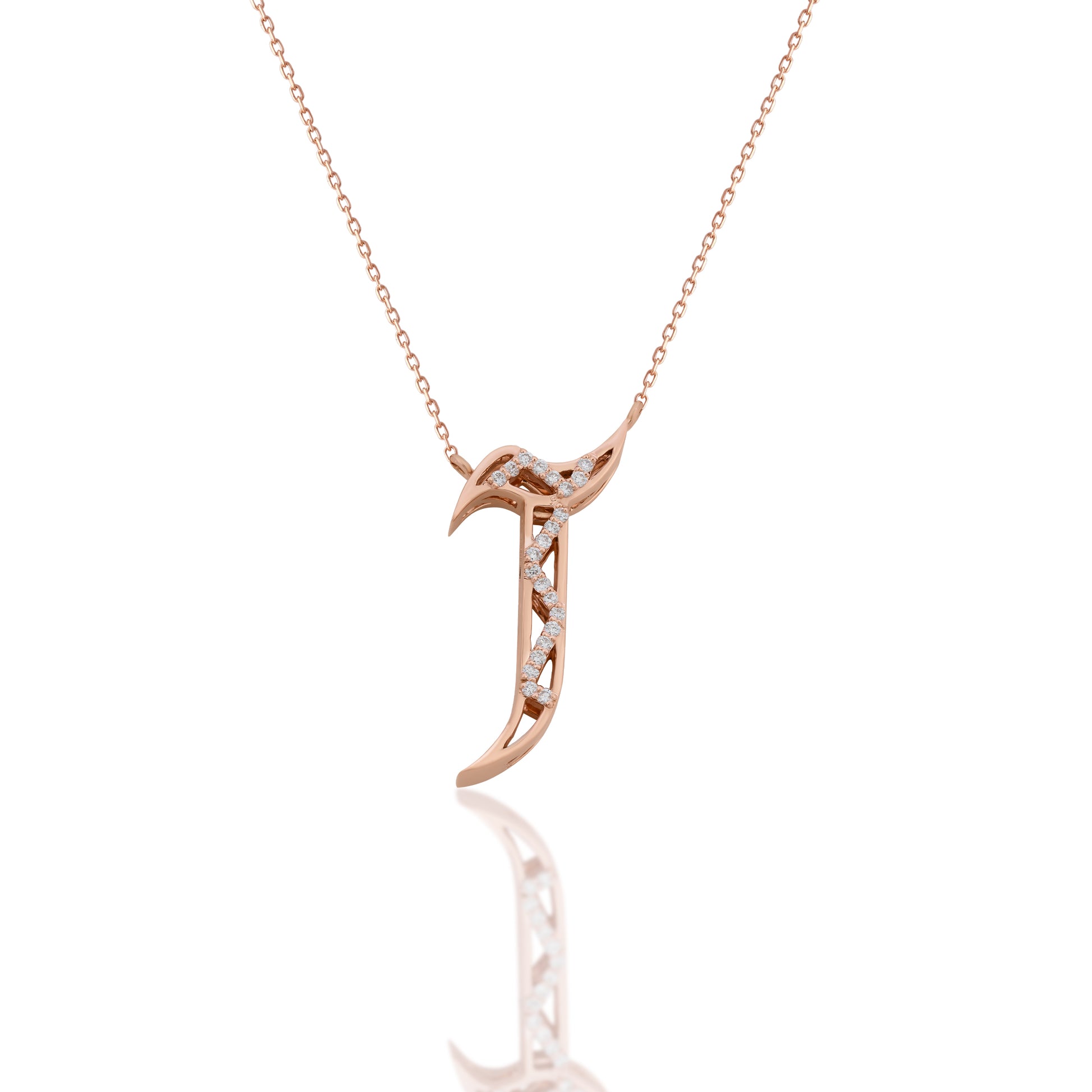 This pendant is crafted with 18k Yellow gold with Two level of gold . Its key element is a unique triangle design inspired by Madrid's ABC Museum façade, complemented by exclusive Arabic letter designs. This is the alphabet Alf - Hamza letter that represents 'A' in English.