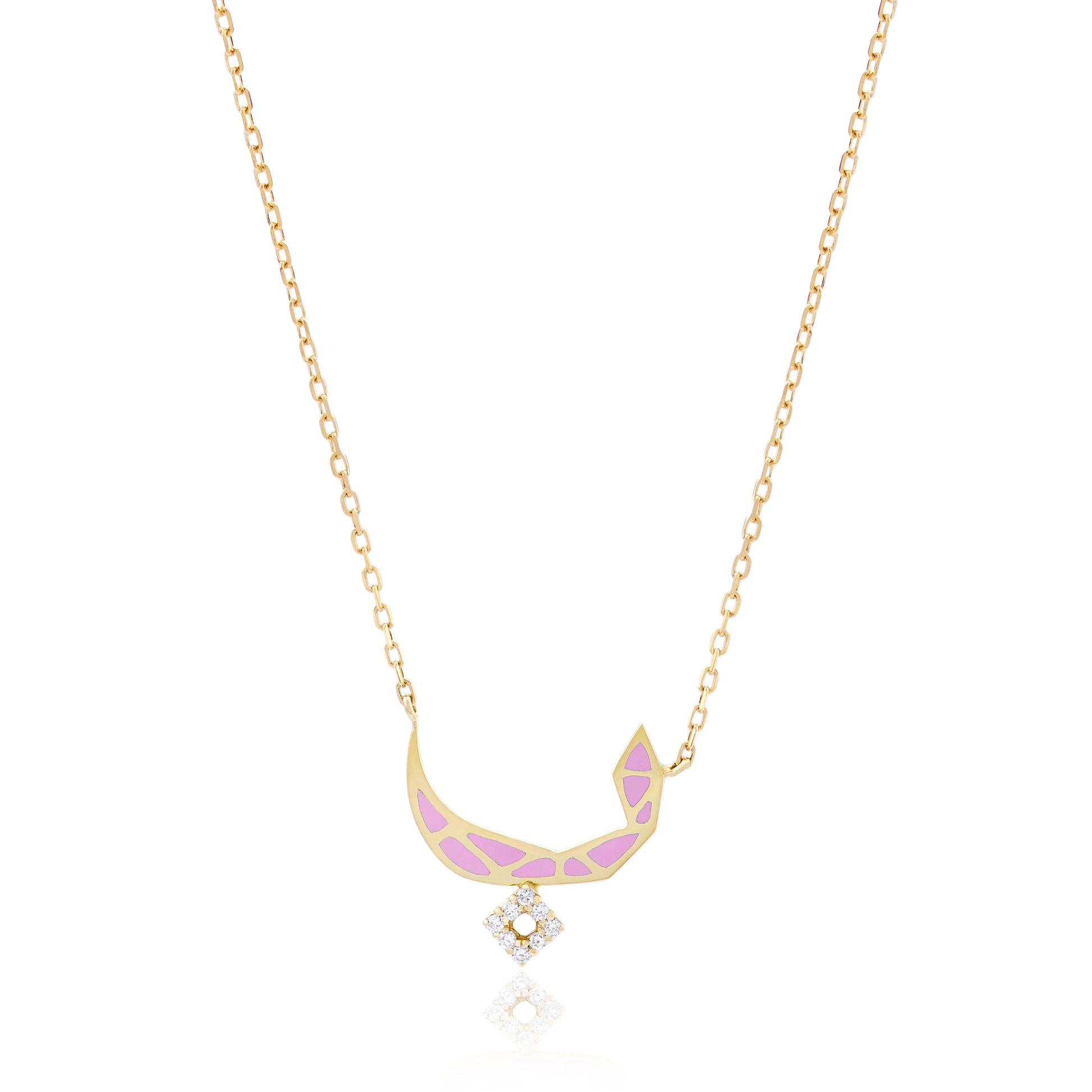 This pendant is crafted with 18k Yellow gold with One level of gold . Its key element is a unique triangle design inspired by Madrid's ABC Museum façade, complemented by exclusive Arabic letter designs. This is the alphabet Baa letter that represents 'B' in English.