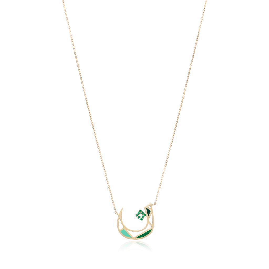 Tessellation – Alphabet Letter Pendant – Noon Letter with Enamel and Emerald Stone