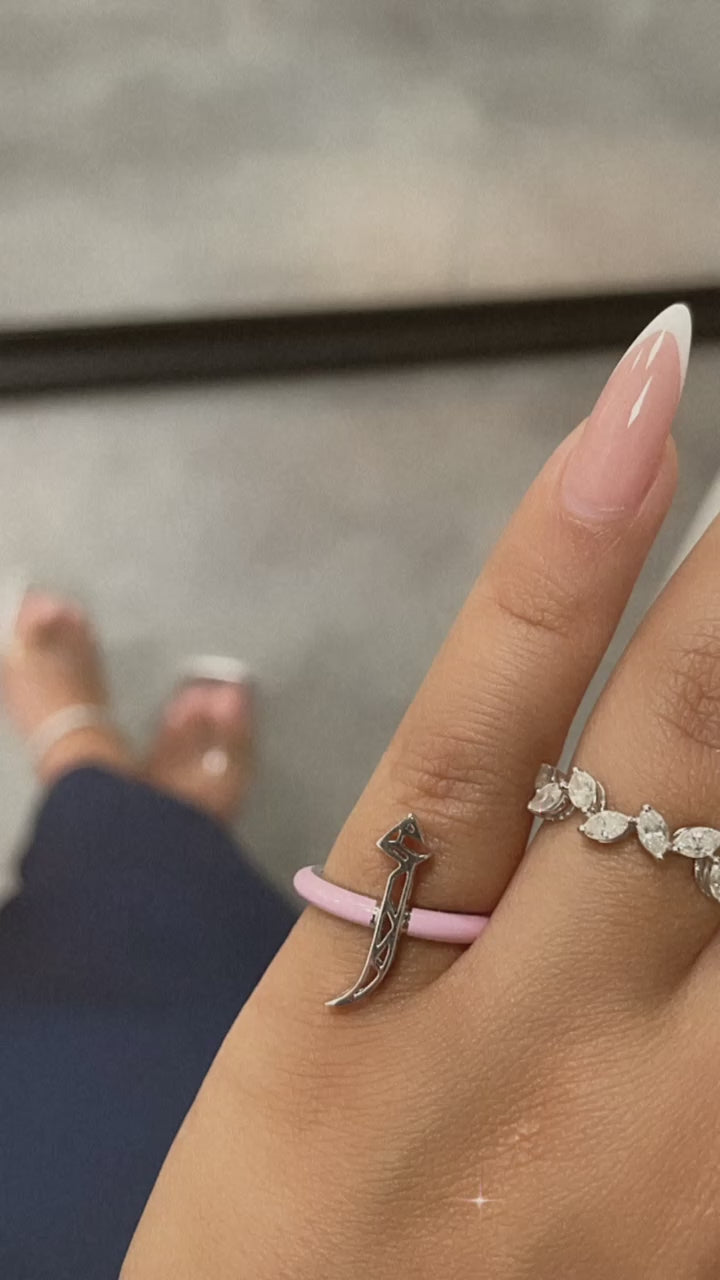 This ring is crafted with 18k yellow gold with one color of enamels and two levels of gold. Its key element is a unique triangle design inspired by Madrid's ABC Museum façade, complemented by exclusive Arabic letter designs.