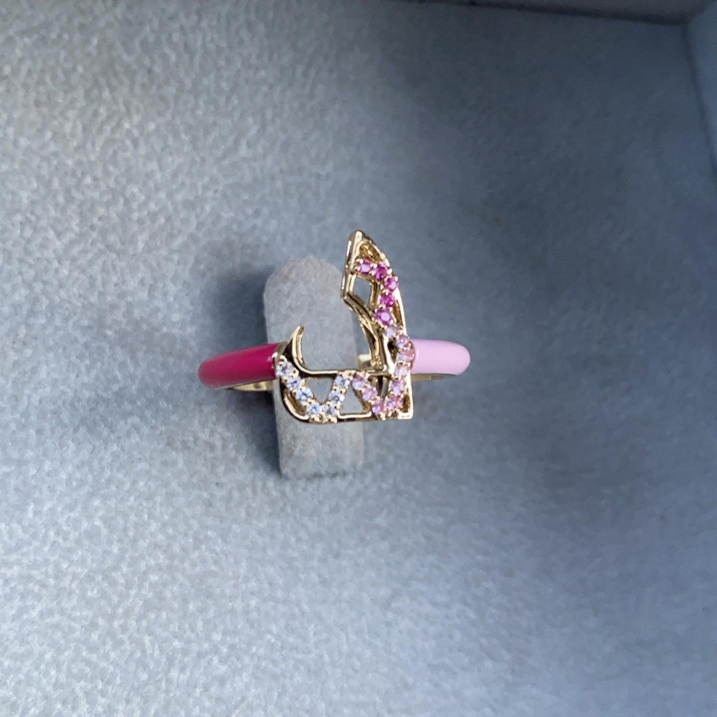 Tessellation – Alphabet Letter Ring With Stones and Two Color Of Enamels