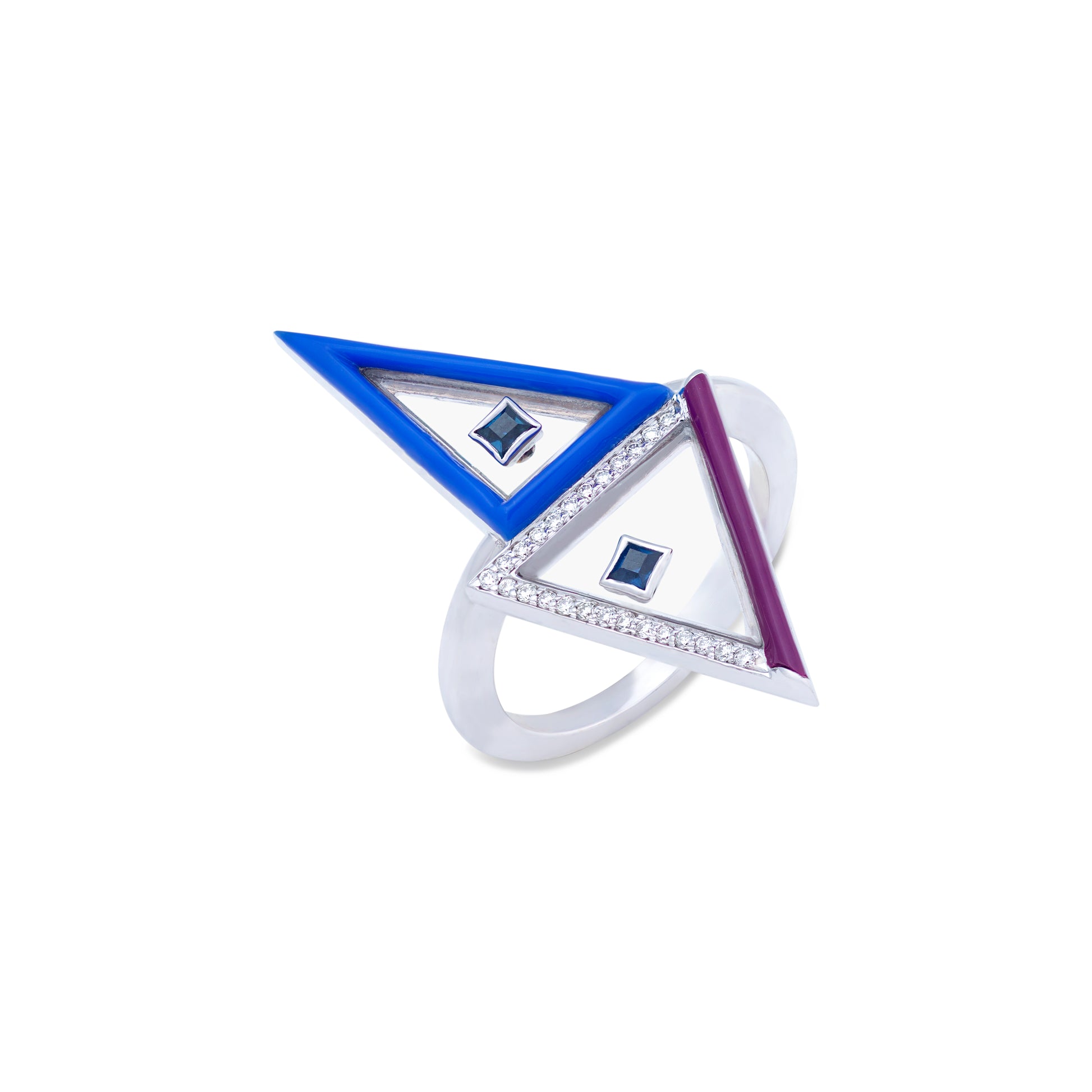 Crafted with 18k yellow gold, set with enamel and sapphire stone, this exquisite ring draws inspiration from the ABC museum in Madrid.
