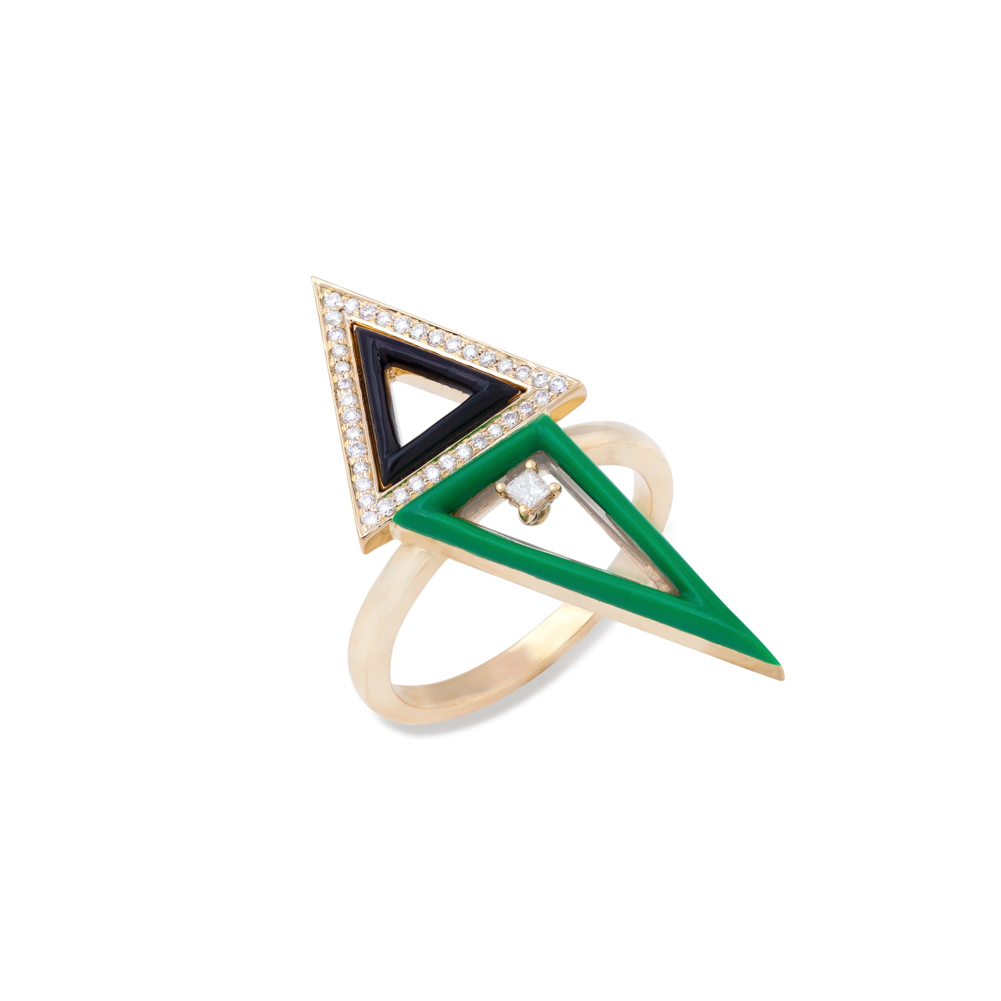 Crafted with 18k yellow gold, enamel , set with diamonds and diamond at its center, this exquisite ring draws inspiration from the ABC museum in Madrid.